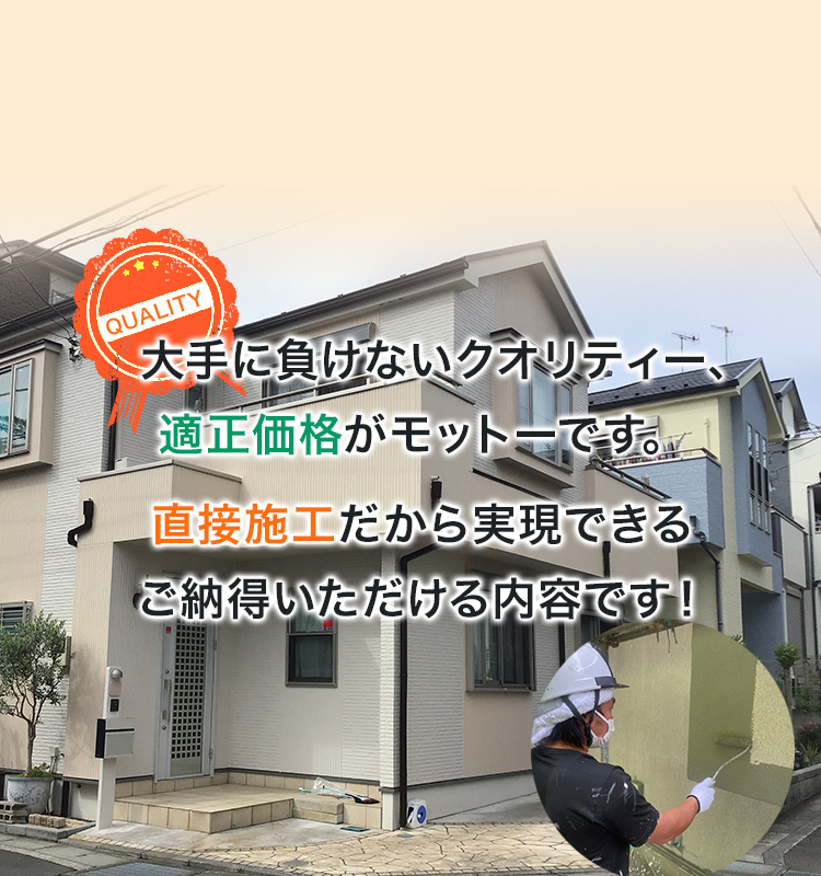 • 特に塗装工事は直接施工、当社専属職人が心を込めて施工させていただきます。