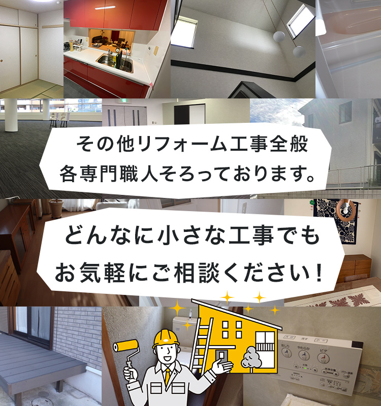• リフォーム工事に関しても、ハウスメーカー・大手リフォーム会社などよりお安くご提案できます。